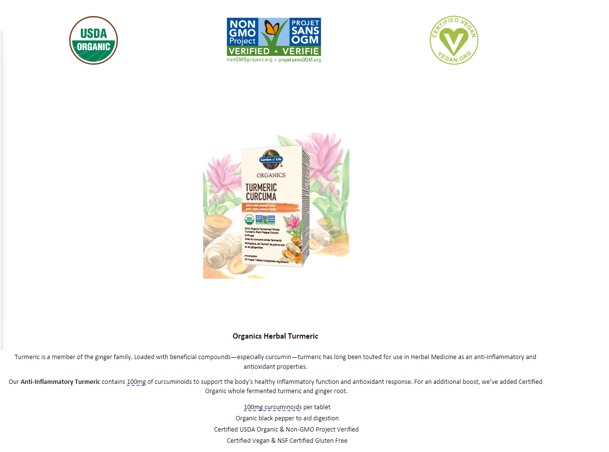 GARDEN OF LIFE CANADA ORGANICS TURMERIC TABLETS